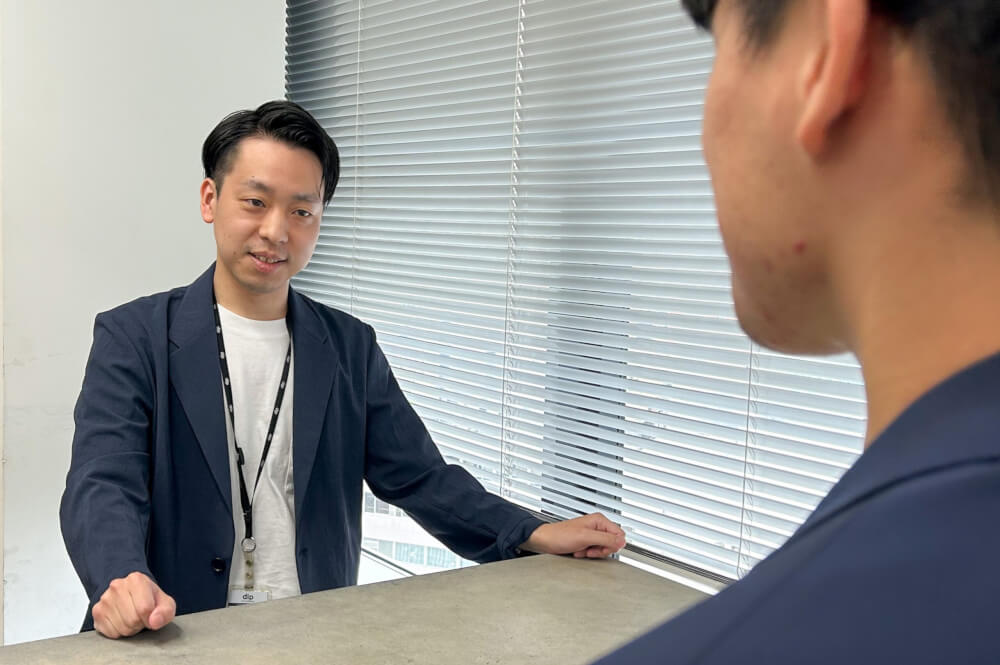 「就活はどうですか?」と聞かれ、「楽しくやれています。たくさんの企業様の話を聞くことが楽しいので、自分自身にとっていい経験になってます」と回答しました。それに対して土屋さんから、「ディップの採用コンサルタントは、さまざまな企業に行き、お客様の話を聞いて、その話をもとに当社のサービスを提案する仕事。就職活動が楽しいなら、ディップの採用コンサルタントとしての適性や素養があると思うよ」と言っていただきました。