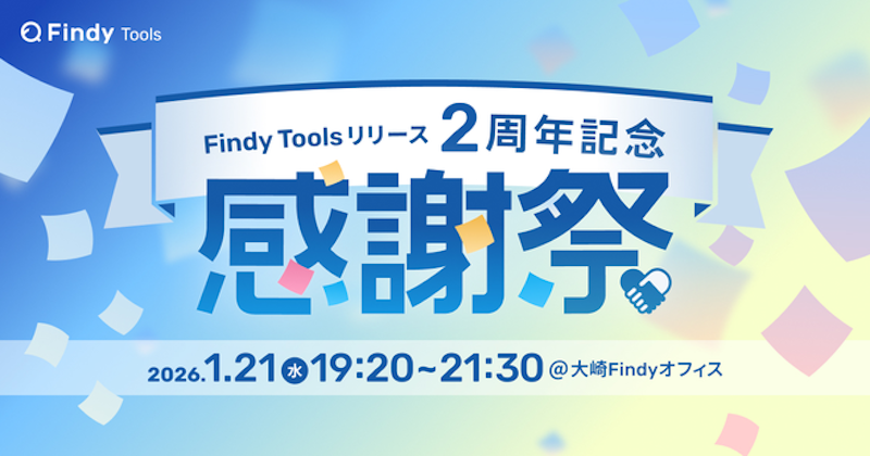 ファインディ株式会社 主催の「Findy Tools 2周年記念 感謝祭」にて、CTO室 DevRelの田中雄登が「記事を起点にした広報の循環」をテーマにライトニングトークに登壇します。