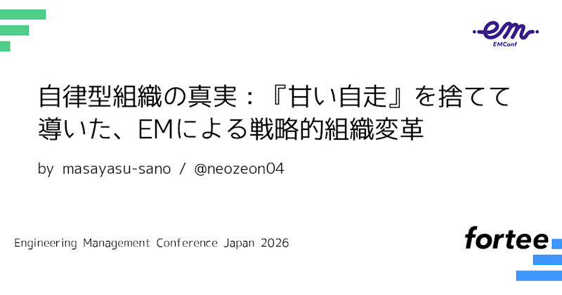 エンジニアリングマネジャー(EM)の佐野雅保が、「自律型組織の真実:『甘い自走』を捨てて導いた、EMによる戦略的組織変革」をテーマにセッション登壇します。